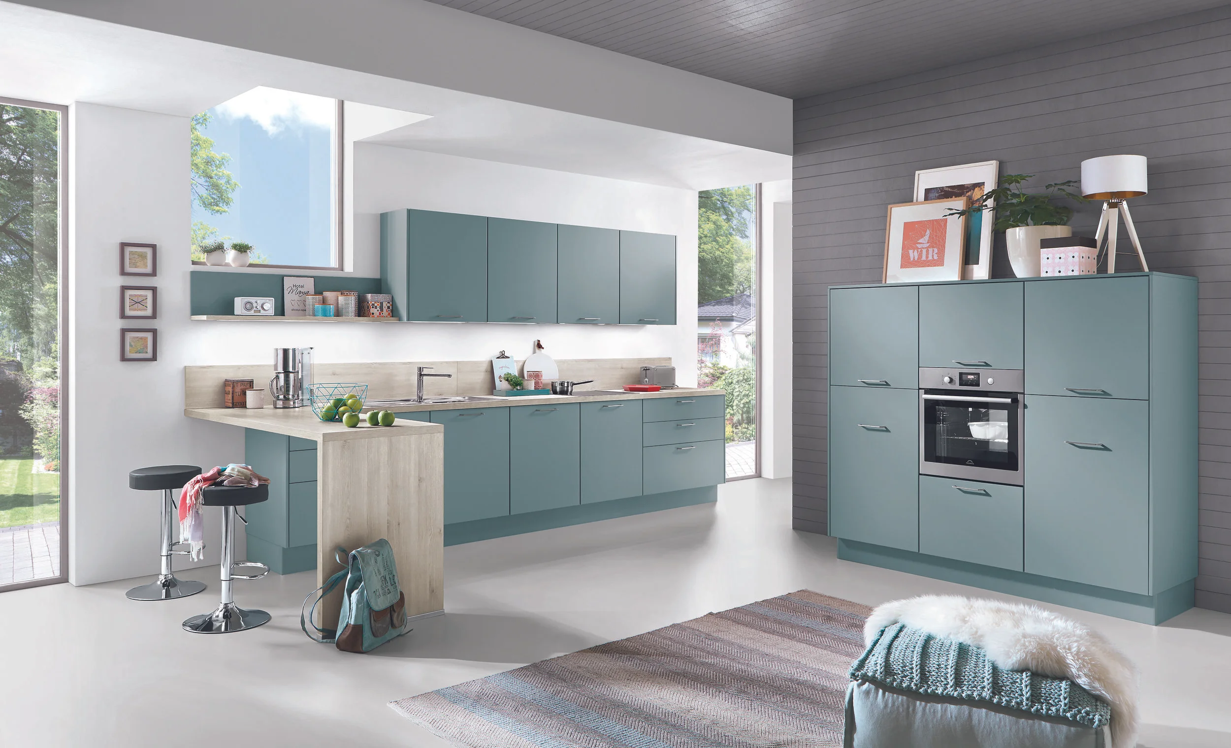 In recent years our Colour Concept Collection has helped many kitchens become brighter, fresher and bolder. Expanding this colour and decor system has allowed us to take creativity to the next level. An extensive range of open shelving units, niche cladding, upright panels, flap door wall units and much more make it easier than ever to design kitchen solutions with even greater versatility and personality.